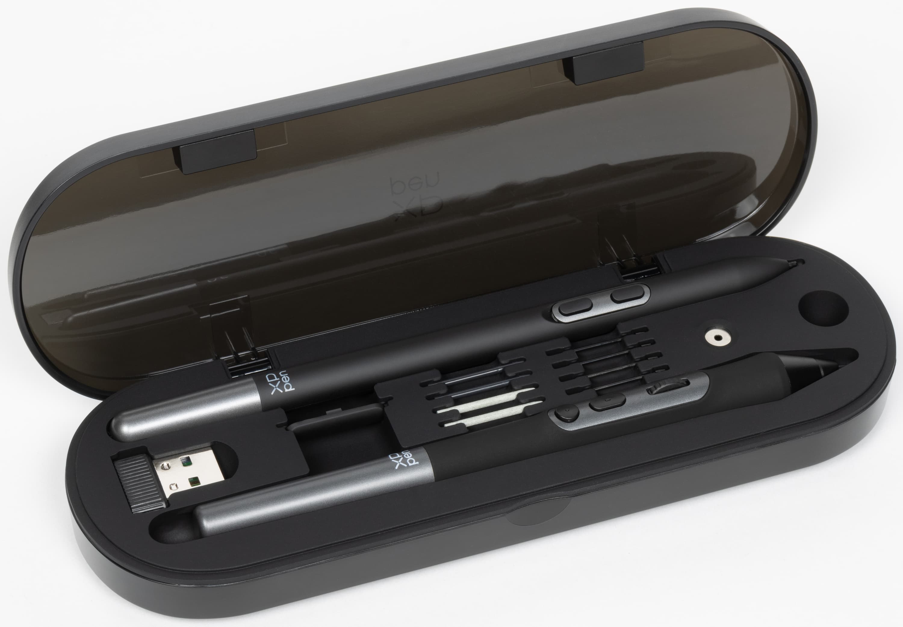 В отдельном симпатичном пластмассовом пенале хранятся стилусы и комплект запасных наконечников для них. В этом же вместилище скрывается адаптер Bluetooth для кнопочного пульта управления (и не только его, так как Bluetooth здесь самый обычный).