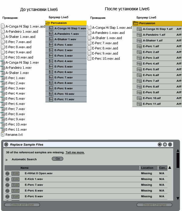 Во время установки шестой версии предлагается сделать оптимизацию старой библиотеки сэмплов под новую версию. После оптимизации «вычищаются» все wav треки. После загрузки проекта с использованными семплами из этой библиотеки нужно заново переназначить пути к файлам или сохранить заранее библиотеку и после дозаписать все wav-файлы назад.