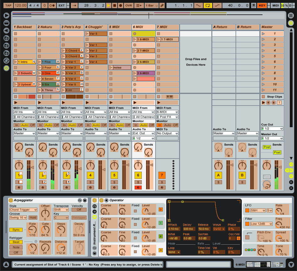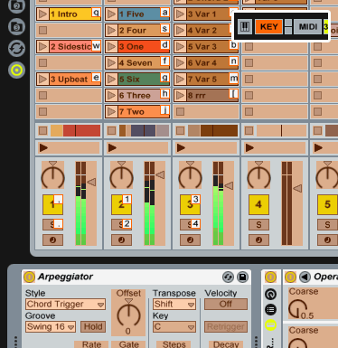 Помимо управления через midi команды, Live6 максимально поддерживает и обычную клавиатуру в виде горячих клавиш или симуляции midi клавиатуры.