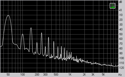 Спектр сигнала, воспроизводимого монитором при подаче частоты 50 Гц