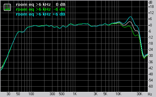 Графики АЧХ, измеренные при разных положениях регулятора room eq>6 kHz