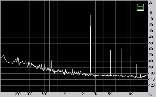 Спектр сигнала, воспроизводимого монитором при подаче частоты 2,5 кГц