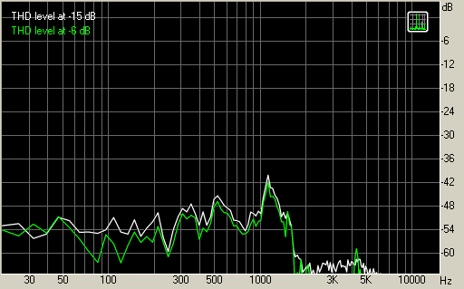 Как мы видим, на высоких частотах наблюдается падение амплитуды третьей гармоники до уровня 0,1%. Это свидетельствует о достаточно детальном воспроизведении на высоких частотах.