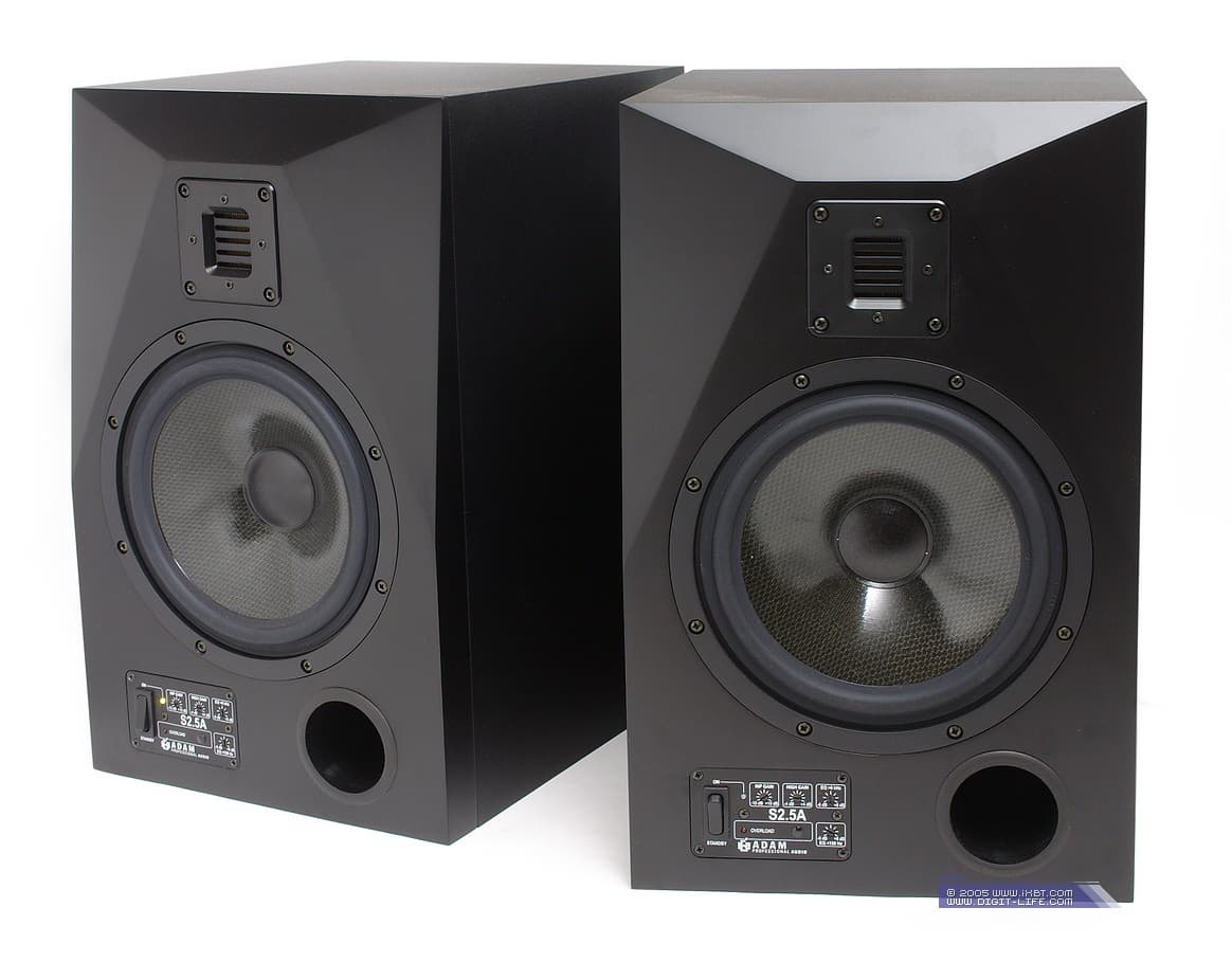Студийная акустика ADAM насчитывает порядка пятнадцати различных моделей мониторов, включая два сабвуфера. Контрольная акустика разделена на три линейки: ближнего (Nearfield), среднего (Midarfield) и дальнего (Main). Между тем, строгих ограничений нет, некоторые модели ближнего поля можно с успехом использовать и в качестве акустики среднего поля. Некоторые активные модели мониторов имеют также и пассивный вариант исполнения. В данном обзоре мы рассмотрим старшую модель S-серии в линейке мониторов ближнего поля — S2.5A.