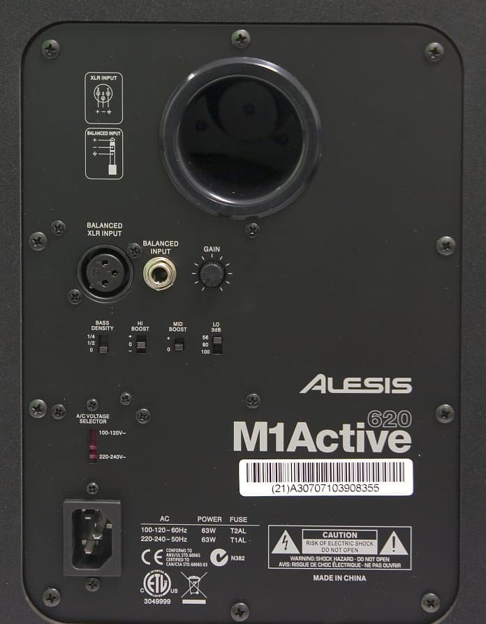 Имеющиеся в Alesis M1Active 620 регулировки позволяют достаточно гибко подстраивать звучание монитора в зависимости от условий помещения. Наши измерения показывают, что при смене значений Hi boost, Mid boost и Bass desity амплитуда сигнала изменятся в пределах 2 дБ на соответствующих частотах для каждого положения переключателя.