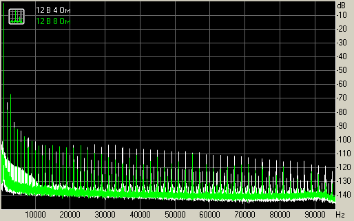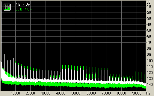 Искажения небольшие, но при этом могли бы быть и ниже, без гармоник высоких порядков на уровне -105~115 дБ во всем спектре. Вторая и третья гармоника достигает -70~80 дБ, но это не тот уровень, чтобы повлиять на субъективное качество музыкального сигнала.