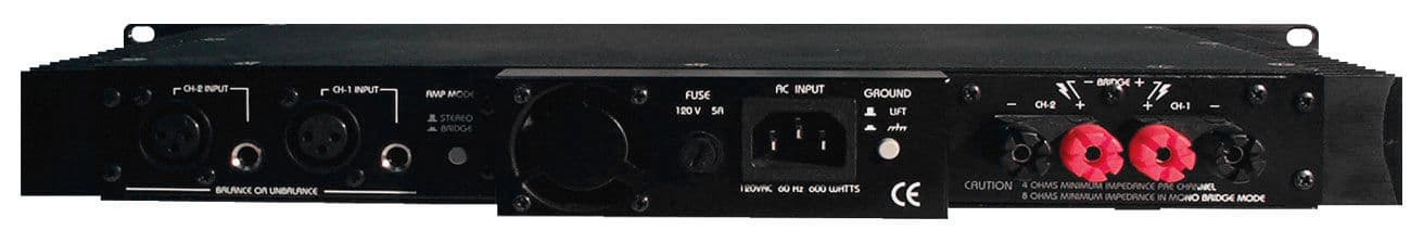 Габариты усилителя максимально компактны. Для лучшего охлаждения применяется вентилятор на задней панели. Опционально предусмотрено подключение к земле через сетевой шнур.