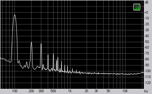 Спектр сигнала, воспроизводимого наушниками при подаче частоты 100 Гц