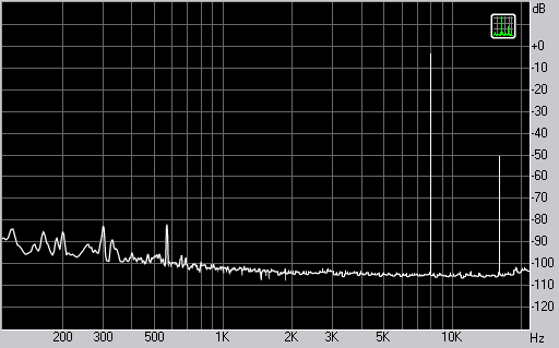Спектр сигнала, воспроизводимого наушниками при подаче частоты 8 кГц
