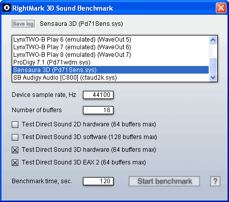 Здесь стоит заострить внимание на том, что все ранее протестированные карты с реализацией алгоритмов Sensaura обычно имели не больше 32 буферов. В случае с картой Audiotrak Prodigy 7.1 мы можем наблюдать все 64 буфера. Это следствие применения более свежих алгоритмов Sensaura, тогда как аналогичные карты от Terratec и M-Audio содержат старую версию файла, от 2002 года. Естественно, мы попытались подменить файлы для аналогичной карты Aureon Space 7.1, но, разочаруем её обладателей — файл не подошёл.