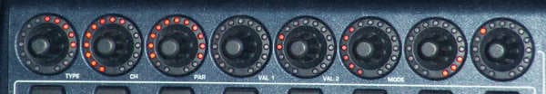 Главная особенность BCR2000 в том, что используются не просто безупорные регуляторы, но еще и с визуальным светодиодным отображением уровня. Расцветка красная, и других вариантов нет. Для studio/home-project применения, хотелось бы иметь альтернативу с другой менее агрессивной подсветкой, голубой, зеленой или желтой. Красный цвет больше востребован для сценических выступлений.