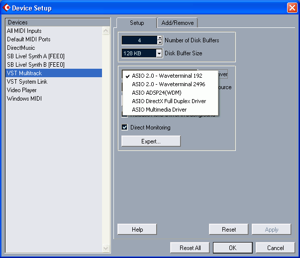 В новых версиях секвенсора производитель еще не отказался от возможности работы с интерфейсами MME и DirectSound. Вы можете это видеть на вкладке выбора устройства.