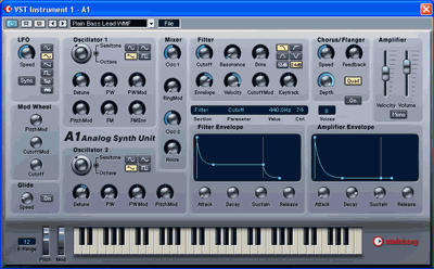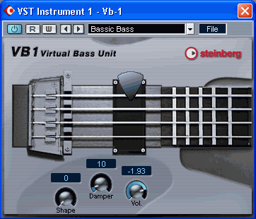 Очень симпатичный синтезатор VB-1. Это 4-голосный VST-инструмент, имитирующий бас-гитару. Звук насыщенный и реалистичный, но имеет неприятный металлический призвук при атаке. Но, во всяком случае, это будет получше многих банков с семплами баса.
