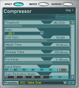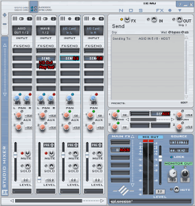В каждый стрип можно загрузить эффекты, анализатор уровня сигнала, отрегулировать панораму, выставить уровень. Дополнительно сигнал можно послать на шину AUX или перенаправить сигнал через команду Send.