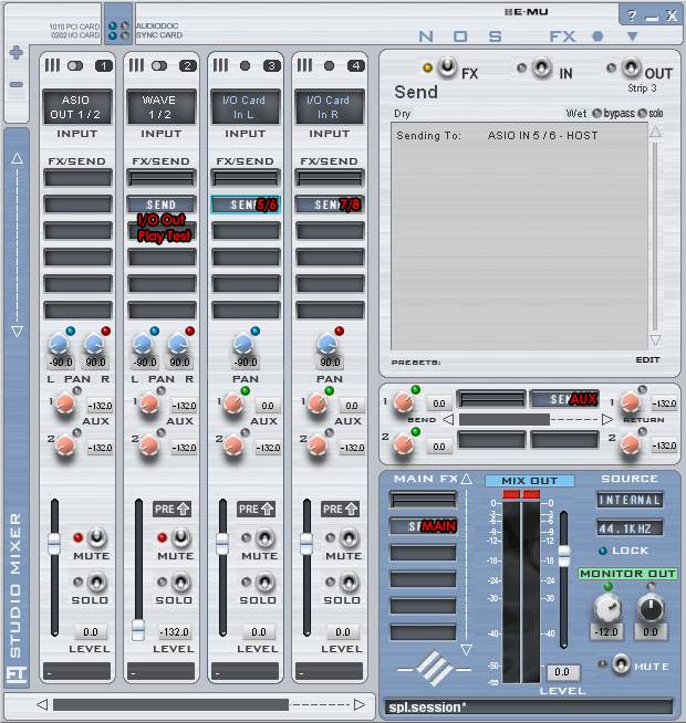 При выборе Send I/O Card Out (выход на ЦАП), сигнал с этой ячейки разделяется на два, один поток идет напрямик в ЦАП, другой — дальше по маршруту в микшере. Важно то, что в ЦАП попадет только поток из этой ячейки, в то время как с main mix и monitor сигнал на ЦАП не поступит.