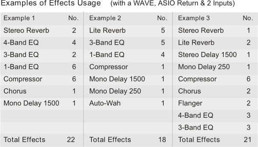 В ASIO распределение входных и выходных каналов более гибкое. Всего ASIO каналов 32, их можно разделить на вход и выход в нужной пользователю пропорции, это позволяет использовать ресурсы DSP максимально. У драйвера KX Project жестко фиксировано 16 каналов на вход и 16 каналов на выход (в сумме те же 32 канала). Преимущество такого подхода проявляется в аппаратном микшировании каналов в DSP. Максимальное значение у KX равно 16, а в PatchMixDSP достигает до 32.