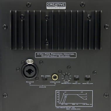 На задней панели мониторов, представляющей собой металлическую пластину, расположен радиатор и органы управления. Подключение возможно как балансным способом, через комбинированный разъем ХLR и TRS-джек, так и небалансным — RCA. Здесь имеется регулятор чувствительности, переключатели частоты среза фильтра низких и высоких частот, а также выключатель питания. Индикатор питания расположен на передней панели и в режиме работы горит синим цветом.