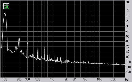 Спектр сигнала, воспроизводимого монитором при подаче частоты 100 Гц