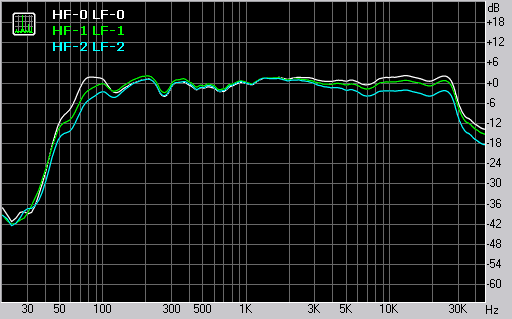 В низкочастотной области подавление уровня на 80 Гц осуществляется на 4 дБ и 3дБ. На высоких частотах подавление начинается с 2 кГц, и на частоте 20 кГц — осуществляется на 2 дБ и 4 дБ.