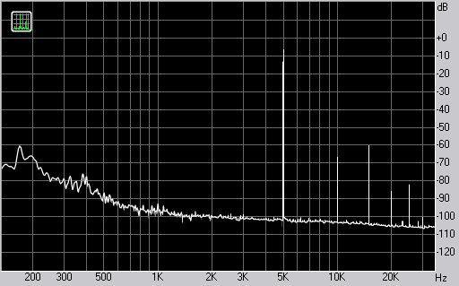 Спектр сигнала, воспроизводимого монитором при подаче частоты 5 кГц