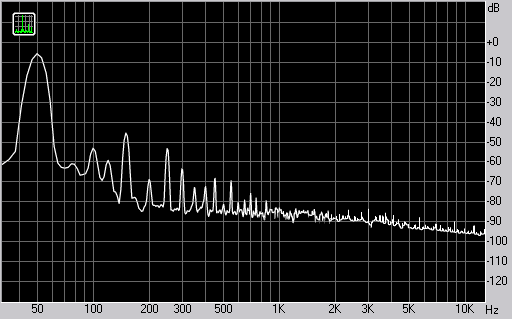 Спектр сигнала, воспроизводимого монитором при подаче частоты 50 Гц