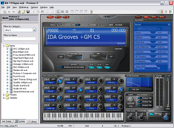 Основным приложением для работы MIDI-клавиатуры является семплер Proteus X, входящий в комплект. К сожалению, в комплекте идет версия 1.5, а апгрейд до последней версии 2 является платным и составляет $79,99.