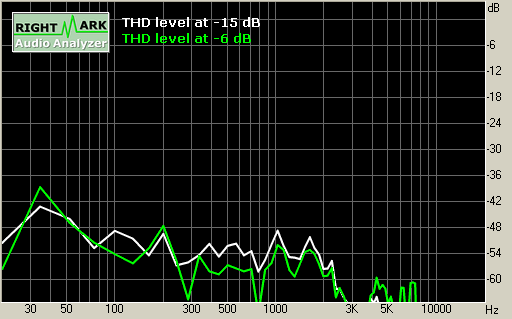 Измерения АЧХ и искажений в тестовом пакете RMAA 5.4 проводились с использованием профессиональной звуковой карты ESI Juli@ (неравномерность АЧХ в loopback в полосе 20 Гц — 20 Гц составляет -0.06, +0.05 дБ) и измерительного микрофона Behringer ECM 8000.