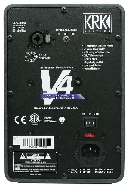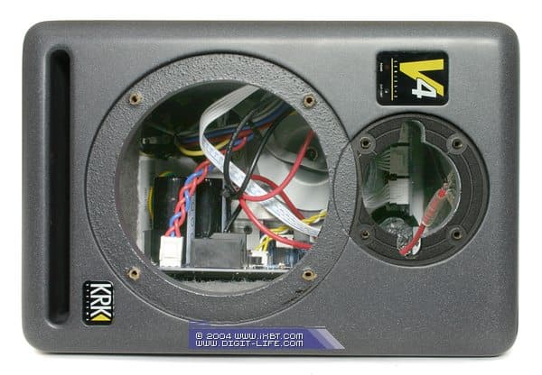 Высокие частоты прослушиваются достаточно детально, однако на наш взгляд им не хватает точности. При прослушивании треков DVD-Audio 24/96 с реальным спектром сигнала до 48 кГц, ощущается нехватка детальности и четкости. Для сравнения те же самые записи были прослушаны на мониторах более высокого класса EVENT Studio Presicion 6 с очень удачным высококачественным ВЧ-динамиком. Подобных недостатков обнаружено не было, качество звучания ВЧ-диапазона у EVENT на порядок превосходило мониторы V4. Более того, ВЧ-динамики у изделия KRK значительно уступают в качестве недорогим моделям Hi-Fi акустики. С учётом цены мониторов, мы не видим препятствий для производителя установить даже в бюджетные модели более качественные ВЧ-динамики.