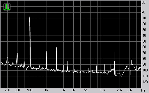 Спектр сигнала, воспроизводимого монитором при подаче частоты 500 Гц