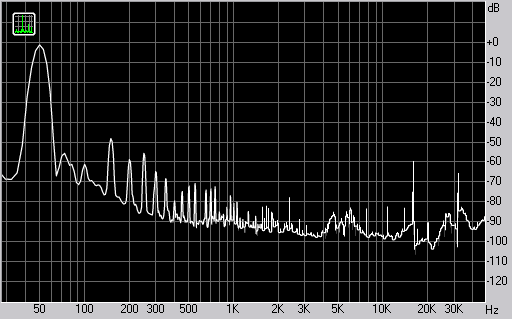 Спектр сигнала, воспроизводимого монитором при подаче частоты 50 Гц