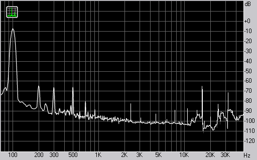 Спектр сигнала, воспроизводимого монитором при подаче частоты 100 Гц