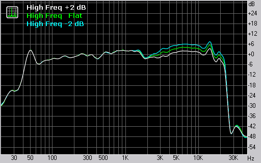 В высокочастотной области изменение амплитуды сигнала осуществляется в диапазоне частот 1,5 Гц — 20 кГц и составляет ±2 дБ, что также соответствует паспортным данным производителя.