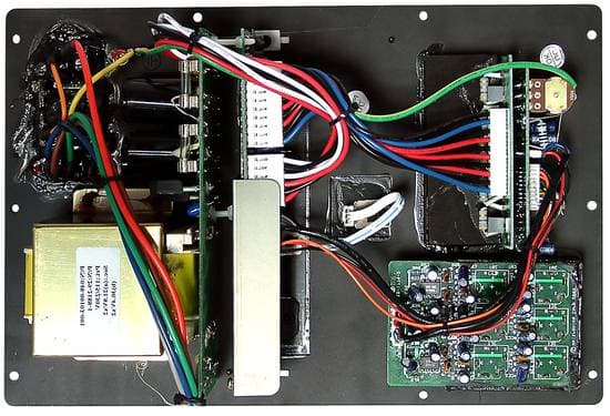 Плата с усилителем крепится внутри на металлическую заднюю панель. Внутри корпуса сабвуфера наполнителя нет. Однако для исключения призвуков и резонансов все разъемы и платы герметично залиты вспененным веществом, а провода крепко собраны, максимально близко друг к другу.