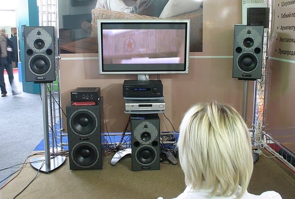 Для привлечения внимания посетителей выставки из акустики линейки AIR был собран кинотеатр.