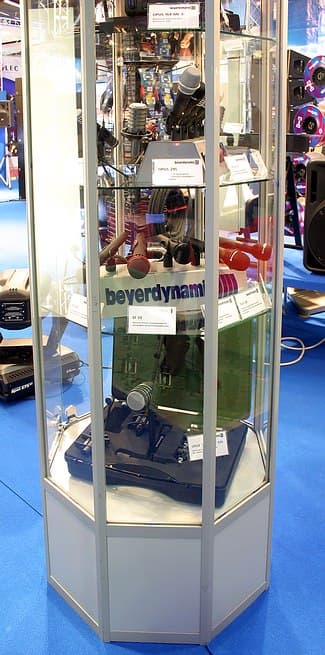 Все показанные модели микрофонов находились за стеклом. К сожалению, на выставке большинство стендов многих производителей были застеклены.