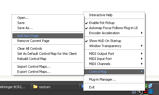 Если после автоматического заполнения окажется, что одной страницы в браузере вам недостаточно (крутилок у VST 10 штук, автоматически 8 назначилось на энкодеры, а две на кнопки, и все поместилось на одну страницу, а надо 8 — на энкодеры на одной странице, и еще 2 — на энкодры на второй странице), то в самом браузере добавить страницу нельзя, нужно добавлять страницу через панель в трее. Это неудобно, если работа идет в полноэкранном режиме, в секвенсоре.