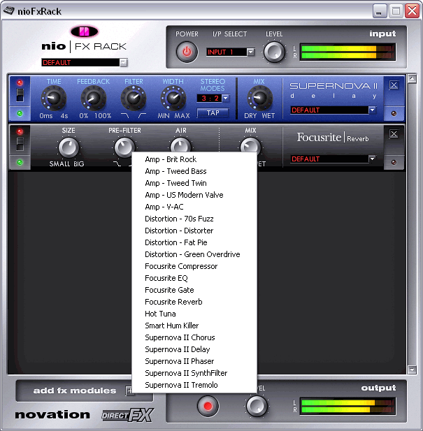 Технология Novation Direct FX позволяет накладывать на входы и выходы устройства программные эффекты в реальном времени.