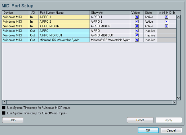 После установки драйверов в системе появляется устройство A-PRO с несколькими портами. Появившееся количество портов позволяет настроить роутинг MIDI-сигналов необходимым образом: например, разделив события клавиш и контроллеров между портами.
