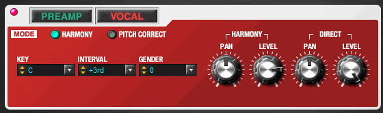 Вокальный вариант подразумевает два режима работы. В HARMONY осуществляется надстройка интервала. Выбирая тональность, интервал строится в рамках указанной гаммы. Надстроенному голосу можно изменять форманту и перемещать по панораме.