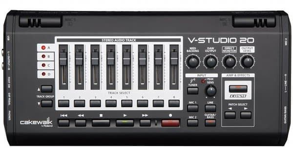 Более простое устройство — V-Studio 100 — урезанный портативный вариант с частью возможностей старшей модели. Ну а младшее устройство — V-Studio 20 — решение начального уровня для широкого круга пользователей. Сегодняшний обзор будет посвящен как раз младшей модели как наиболее простой и доступной. На момент написания статьи стоимость V-Studio 20 на нашем рынке составляет порядка 12 тыс. рублей.