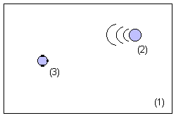 Реверберация сопровождает любой звук, возникший в естественной акустической среде. Возникает она при отражении звуковой волны от каких-либо препятствий и ее возврата в точку прослушивания. Поэтому, в восприятии акустического звука присутствует его прямой источник и многочисленные отражения от ближайших поверхностей — преград. Графически это можно представить следующим образом: пусть в неком помещении (1) имеется источник сигнала (2) и слушатель (3).