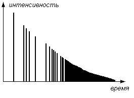 Первым приходит прямой сигнал от источника звука, имеющий наибольшую интенсивность. Вслед за ним приходят ранние или первичные отражения от стен, пола, потолка, имеющие меньшую интенсивность, величина которой зависит и от пройденного расстояния и от поглощающих свойств материалов поверхностей. Далее подходят вторичные и многочисленные последующие отражения с быстро уменьшающейся интенсивностью. В реальной ситуации звуковые импульсы обычно имеют протяженность большую, чем время прихода первых отражений, поэтому реверберация накладывается на исходный звук в процессе его звучания.