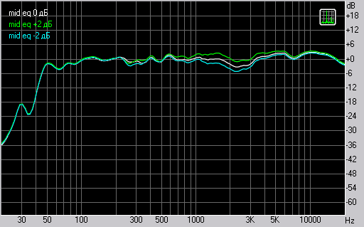 измеренный при разных положениях тумблера Mid EQ