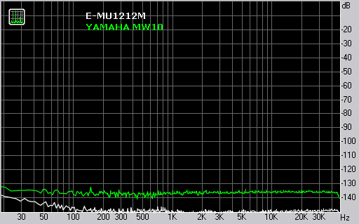 Микшер Yamaha MW10 тестировался с применением E-MU 1212M. Чтобы показать вклад карты, приведём измерения в тех же условиях для обоих устройств.