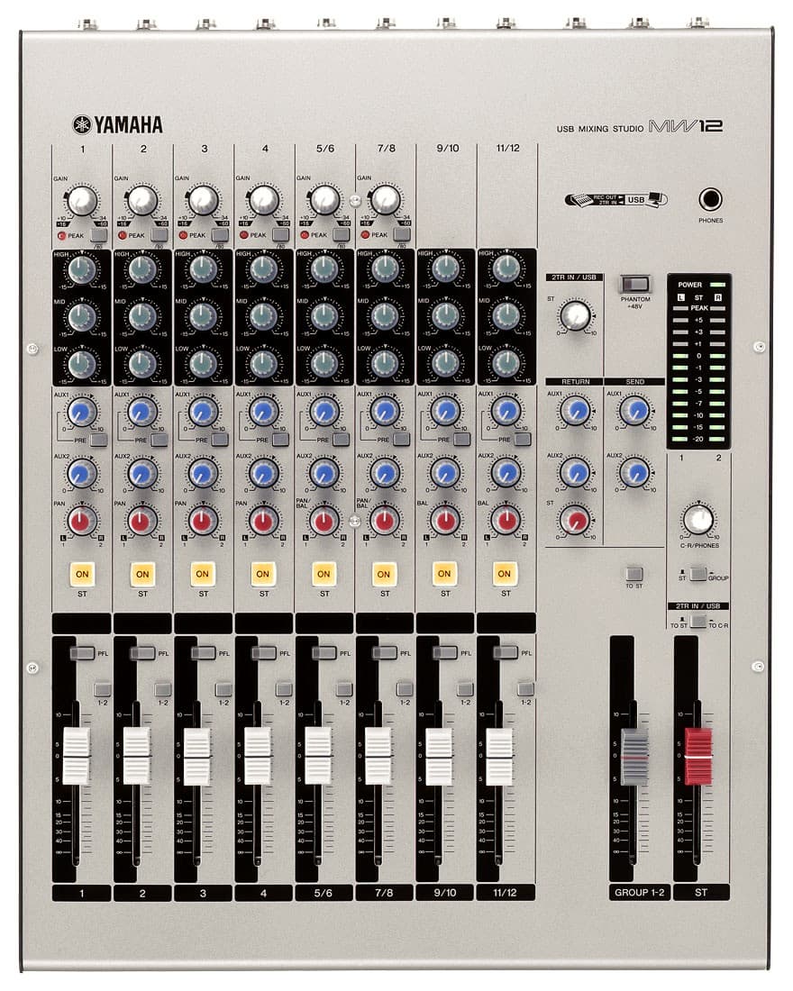 MW12 имеет 12 входов, включая 6 микрофонных с фантомным питанием. На входах имеются 3-полосные EQ, панорама и обрезной ВЧ-фильтр, а также посыл/возврат на первых четырех каналах. Два Aux посыла, один переключаемый пре/пост фейдер, Stereo и Groups для конфигурирования каналов. Мастер-секция включает стерео посыл/возврат, выходы Stereo Master, Control Room.