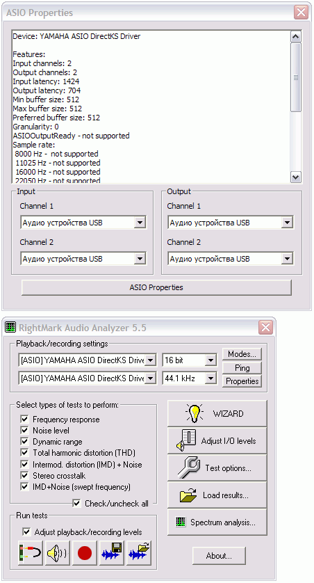 Диагностика драйвера ASIO DirectKS в программе RMAA 5.6: