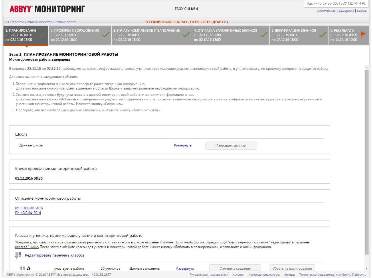 В горизонтальной ленте слева направо выстраиваются этапы проведения диагностической работы, от планирования до просмотра результатов. Каждый шаг сопровождается подробными инструкциями на самом видном месте — за такой дружелюбный подход к российским педагогам Abbyy стоит поблагодарить.