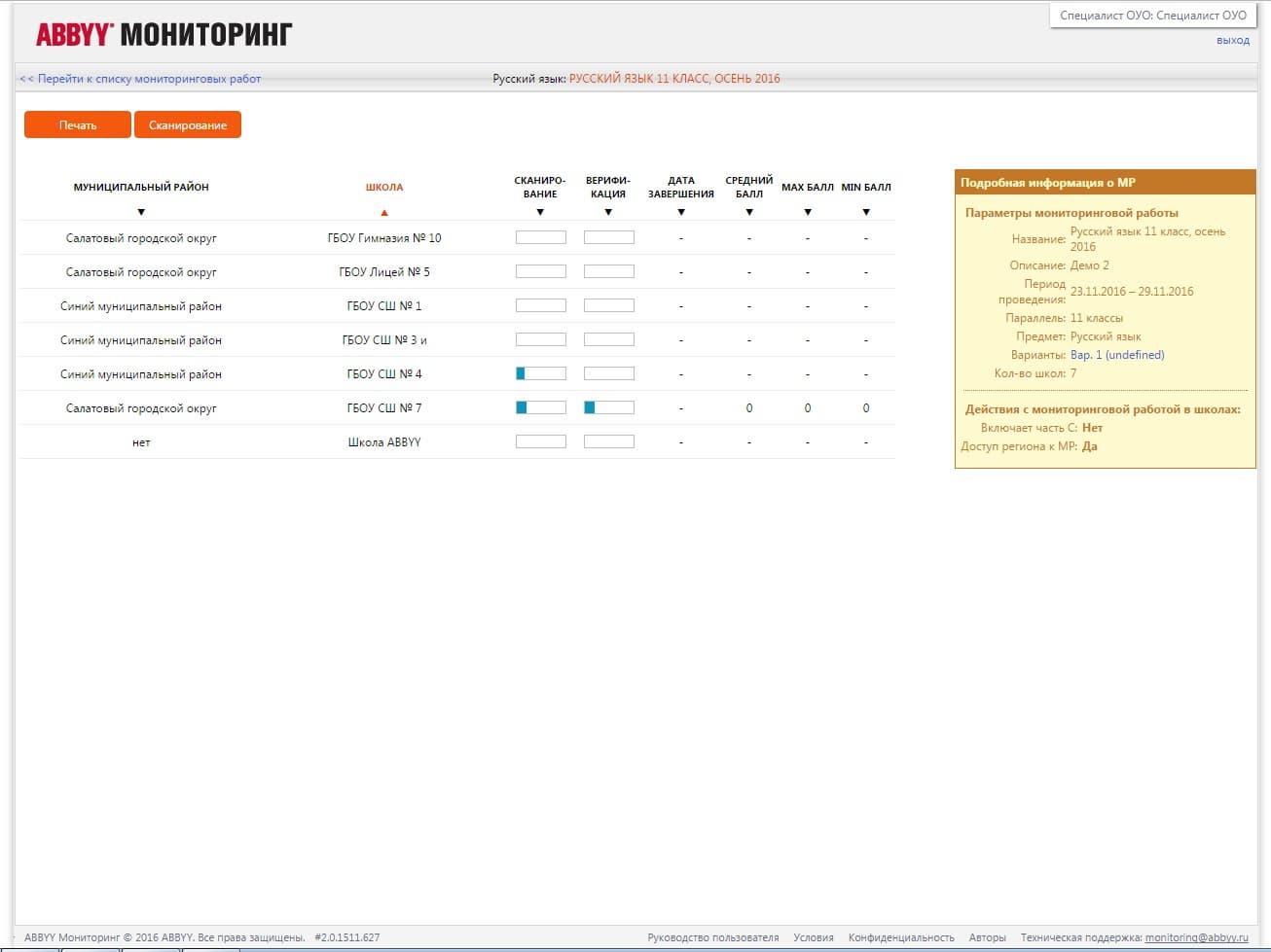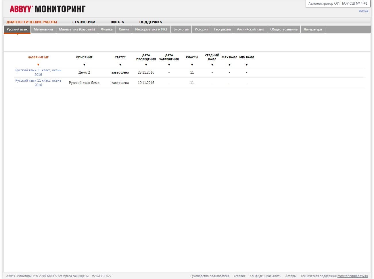 Посмотрим, как будет работать с платформой Abbyy преподаватель или директор одной из школ, которая принимает участие в масштабном мониторинговом мероприятии. Заходим на monitoring.abbyy.ru, логинимся как ответственное лицо в школе.