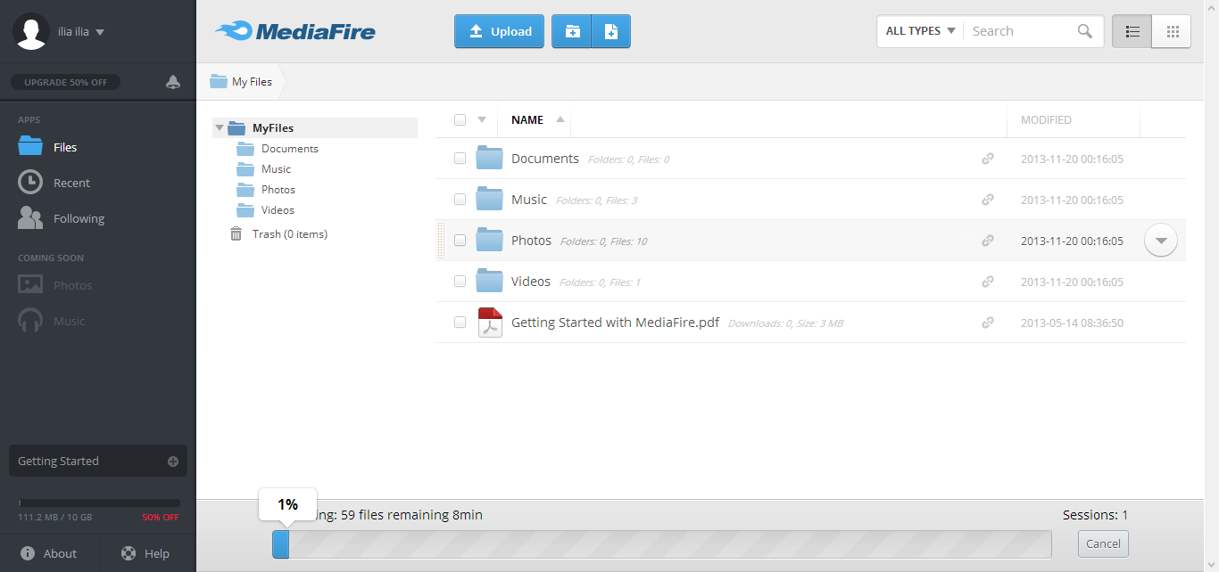 Один из самых популярных сервисов для хранения файлов. MediaFire предлагает от 10 до 50 ГБ пространства бесплатно. «Заработать» дополнительное пространство можно путем подключения социальных аккаунтов, приглашения других пользователей по реферальной ссылке и прочим действиям (подробнее). Но это не позволяет закрыть глаза на другие ограничения, среди которых — невозможность отключения рекламных блоков и лимит на размер загружаемого файла — 200 МБ. Имеются и другие специфические ограничения, связанные с архивированием и временем хранения файлов.
