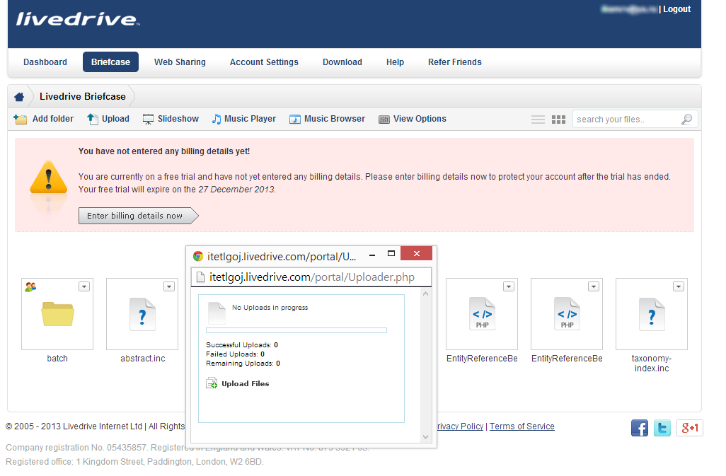 LiveDrive не предоставляет бесплатное пространство для хранения данных, однако для каждого из тарифов доступен ознакомительный режим. Неудобство состоит в том, что без ввода платежных данных придется постоянно отвлекаться на уведомление в панели управления. За каждое приглашение пользователей по реферальной ссылке предоставляется 3 месяца бесплатного использования сервиса. 1 ТБ дополнительного пространства обойдется в $8 в месяц — что, кстати говоря, намного дешевле, чем у конкурентов.
